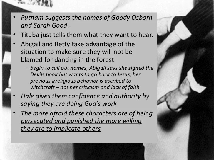 Abigail Sees That Confessing To Witchcraft Gets Tituba Positive Attention, And Makes Her A Sudden Credible Source To Accuse Others, So Of Course She Decides To Admit She Has Sinned But Wants To Change To Win The Hearts Of Salem.